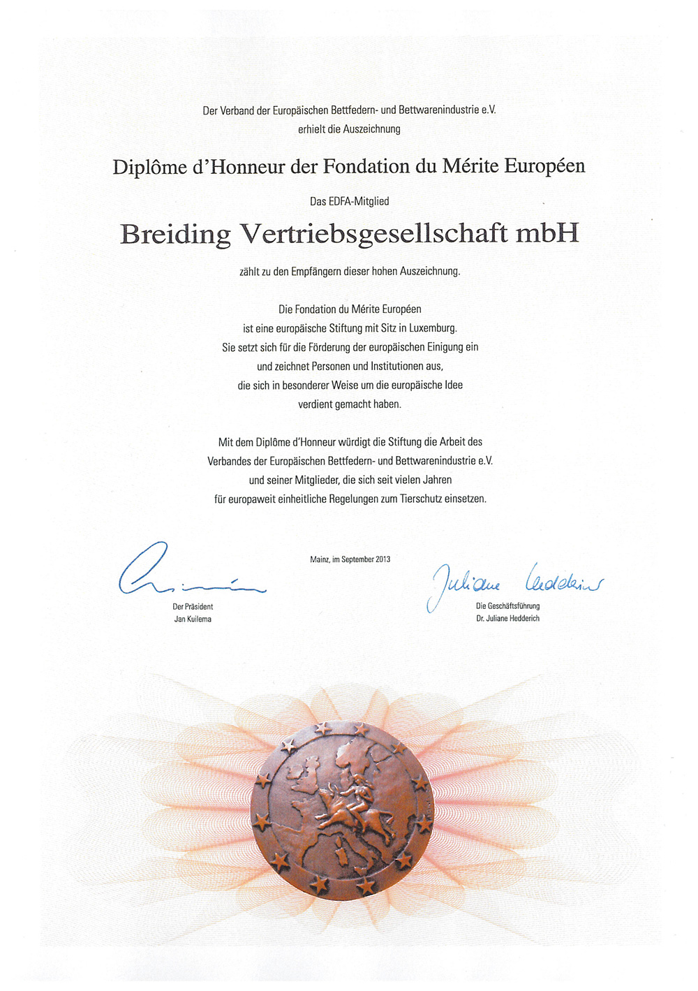 Füllungen und Bezugsstoffe sorgen wir für eine gleichbleibend hohe Qualität unserer Bettwaren.